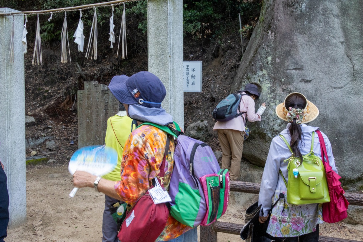 「不動岩」と呼ばれるこちらの巨石、よく見るとえぐられたようなくぼみがあります。