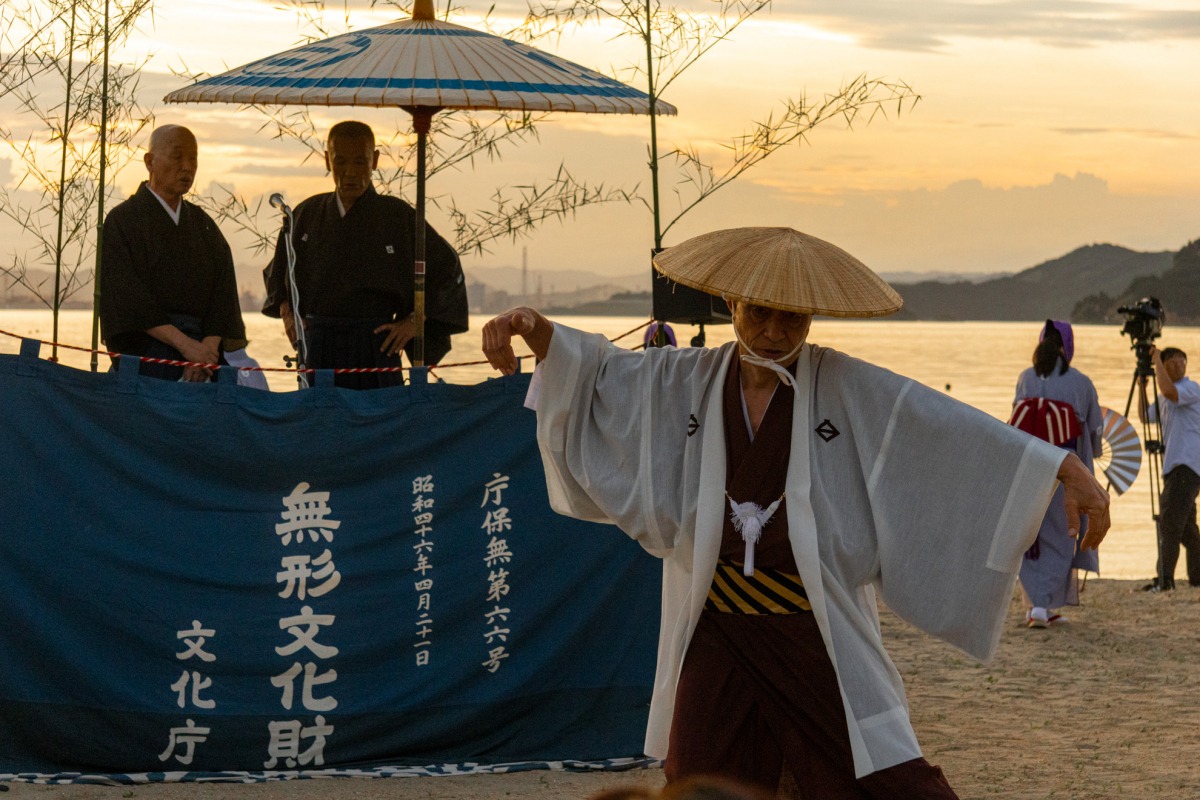 岡山県三大盆踊りのひとつに数えられる「白石踊」。源平水島合戦での戦死者を弔うために始まった800年以上の歴史を持つ盆踊りで、2022年には風流踊りとしてユネスコの無形文化遺産にも登録されています。
