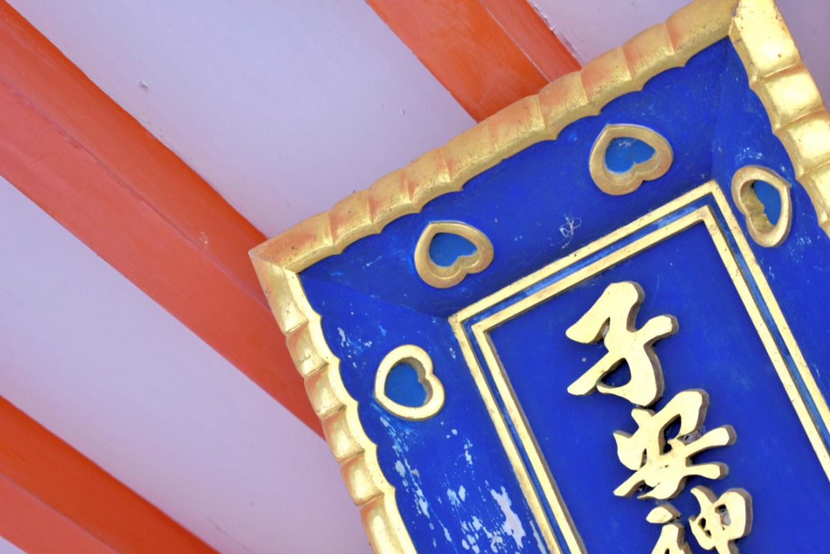 元禄5年に吉備津彦神社に建立された、縁結び・子授かり・安産などにご利益があるとされる社です。このファンキーな色合わせとハート型。幸せパワーみなぎってきそうです。