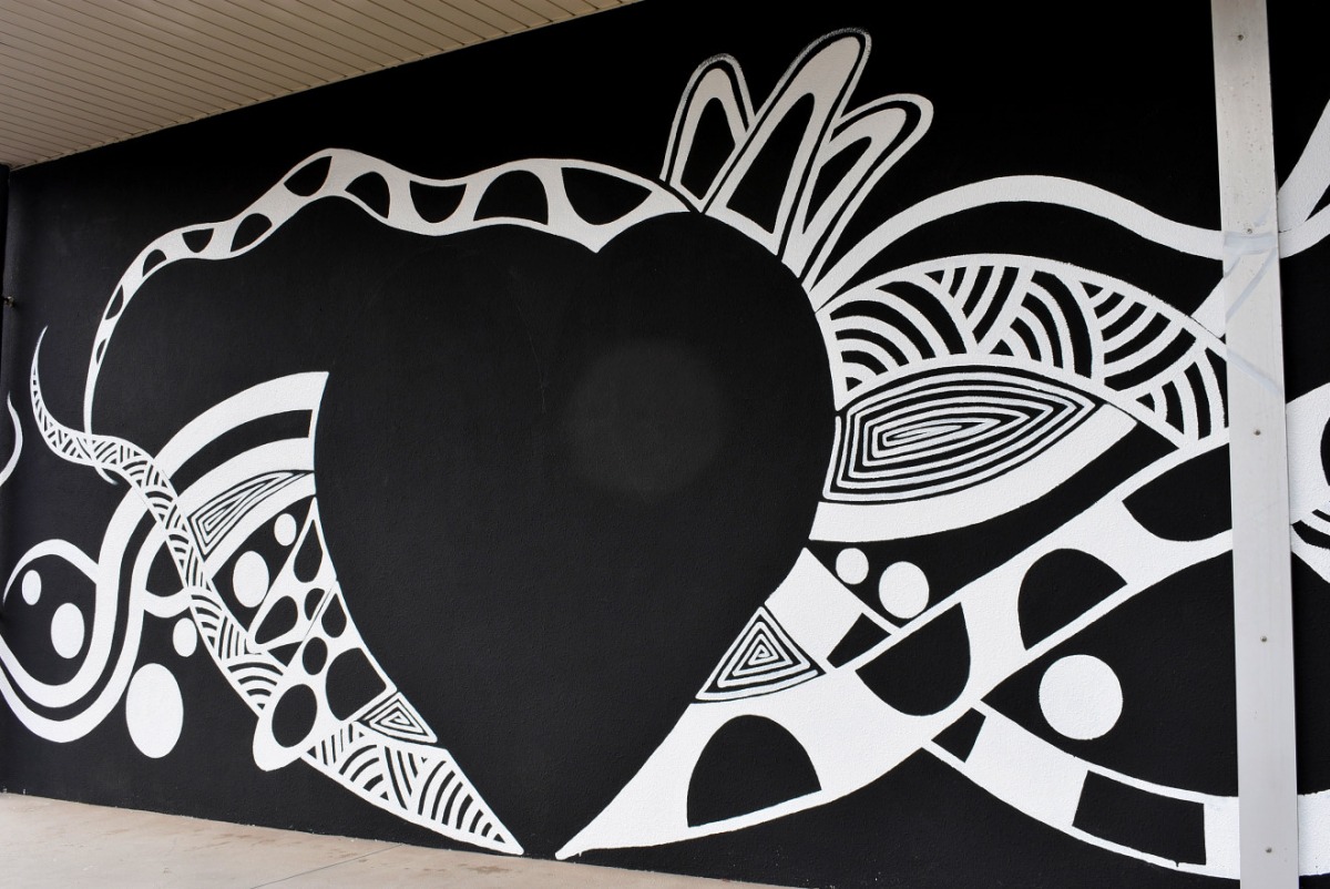 アイアンナッツの斜め向かいのビルに、大きな黒いハートが描かれた壁がドーンと出現しています。1階にはかわいいワッフルのお店もオープン(12月~)するなど、見つけて撮りたいスポット続々誕生しています。