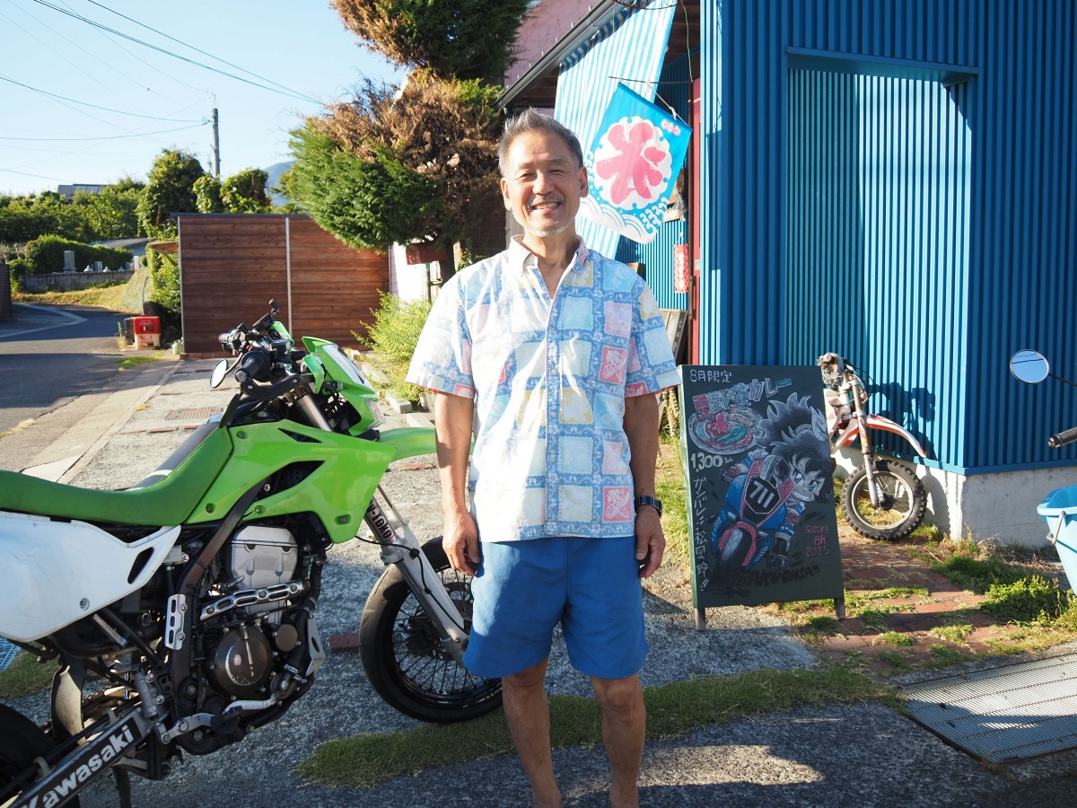 店主はホンダ Soloやレブルに乗るライダー。岡山のおすすめスポットを聞くと、「笠岡ラーメン巡りやカフェ巡りも楽しいですよ。美味しいお店、教えます!」と気さくに話してくれました。
