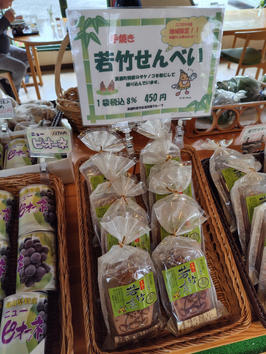 公園内にある「たけのこ茶屋」では、ランチのほかコーヒーや甘味、真備のお土産などが販売されています。