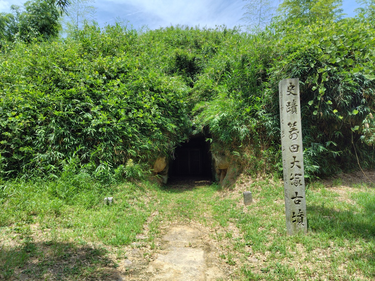 「箭田(やた)大塚古墳」は岡山三大巨石墳に数えられている古墳で、長大な横穴式石室があることで有名です。吉備津彦命の子孫とされる下道氏の墓と考えられています。入口まで近づいてみると夏でも冷たい空気を感じることができます。