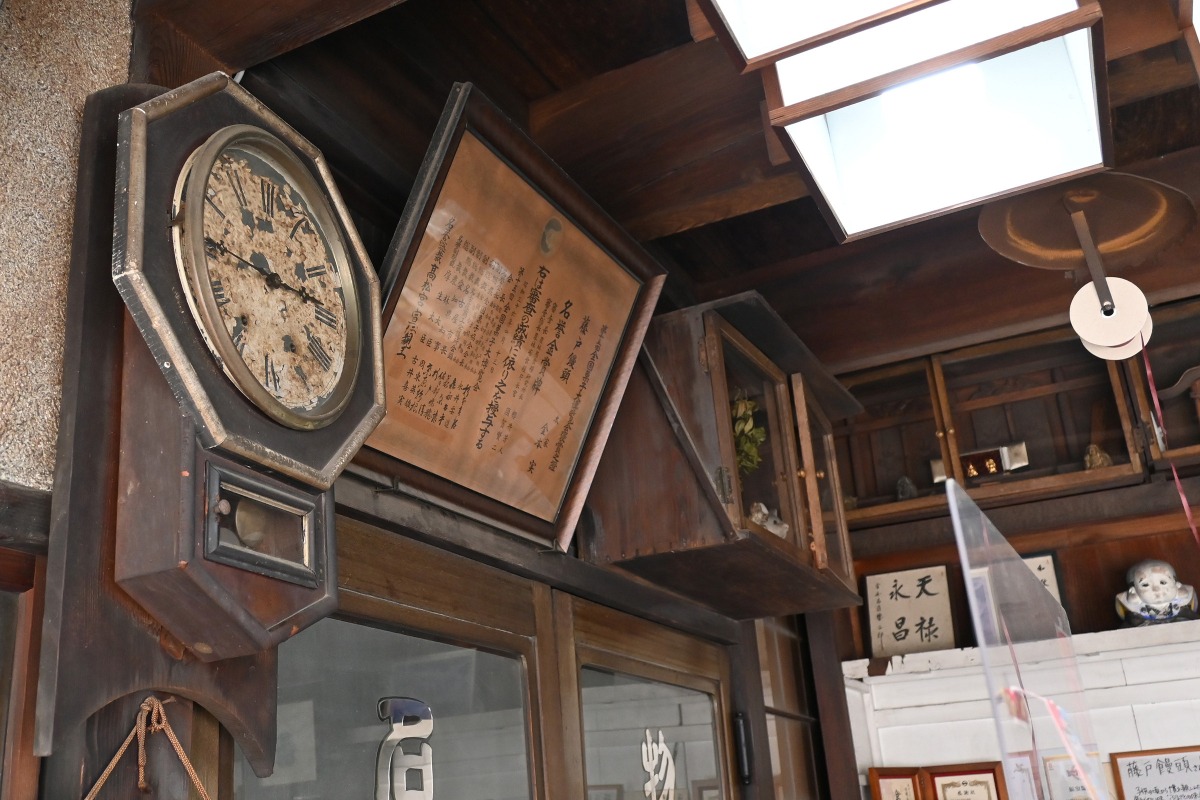 昭和の雰囲気が色濃く残る本店、ガラスケースや時計、扉など、一気にタイムスリップしたような感覚になります。