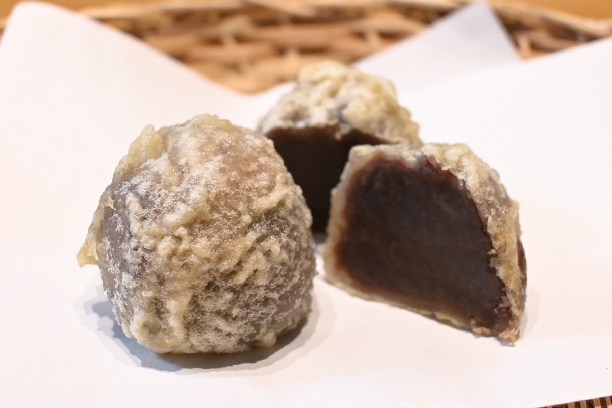 藤戸まんぢゅうにそのまま衣をつけてサッと揚げて、熱々をいただきます!「あ、おいしい」。サクッとした衣と熱いあんこ、好相性です。おやつとしてはもちろん、甘いものとお酒を一緒に愉しむ私は日本酒のアテにしましたが、リピートしたいですね(好みがありますので、自己判断で)。