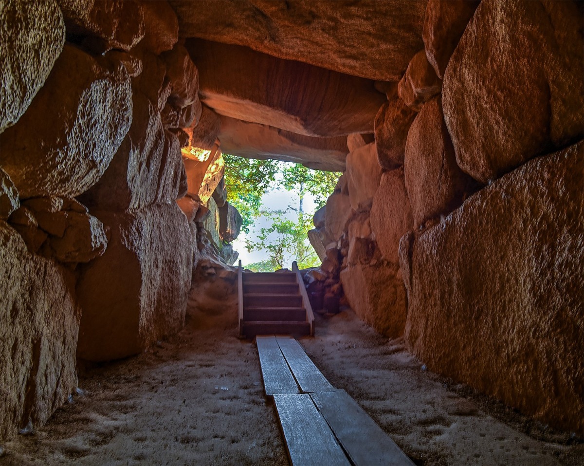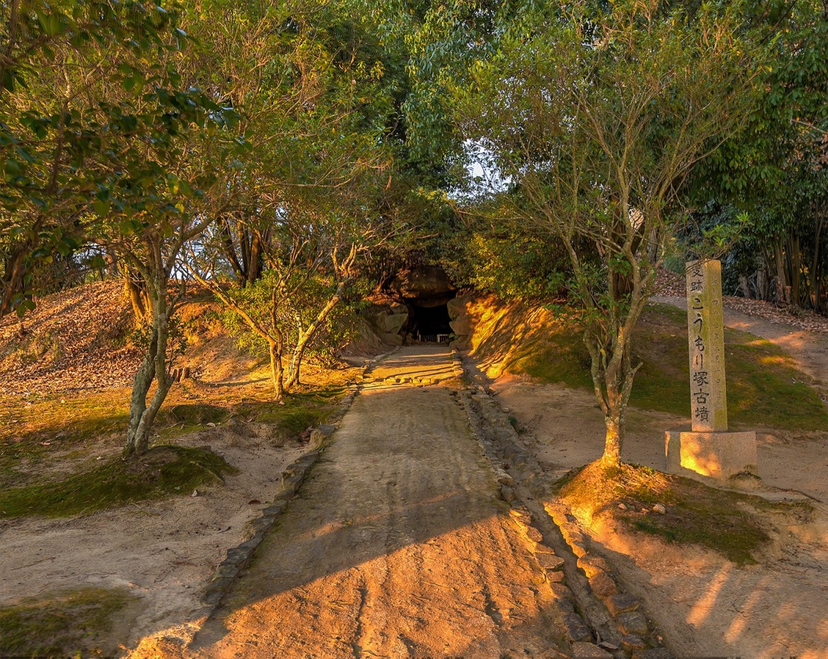 この横穴式石室は、全長19.4mで巨大な石を組み合わせて造られており、岡山県下三大巨石墳の一つに数えられています。また、全国でも、確認されている横穴式石室の中では第4位の規模を誇ります。