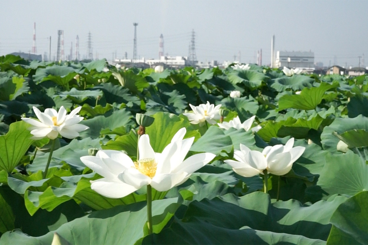 倉敷市連島町(つらじまちょう)鶴新田地区に広がる約35haの蓮根畑。ここで栽培される柔らかくシャキシャキした色白の「連島れんこん」は倉敷が誇るブランドレンコンです。
