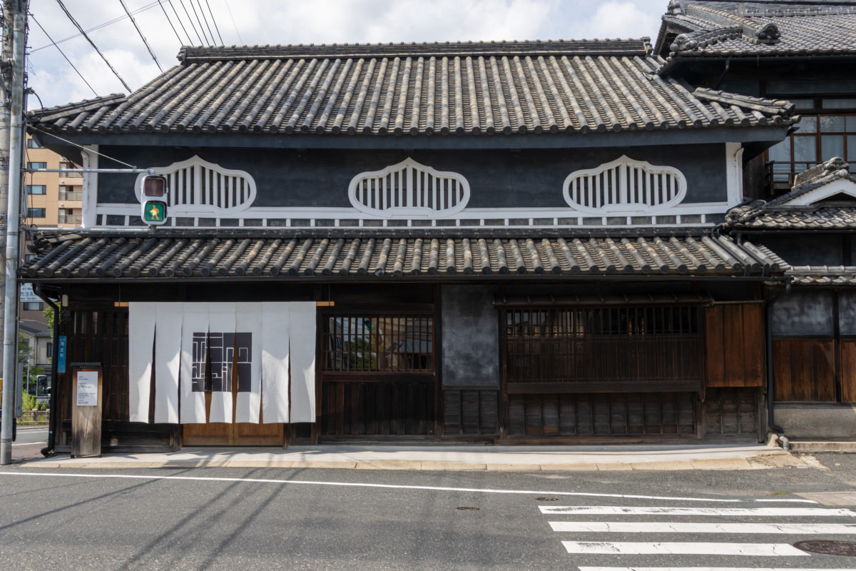 福岡醤油蔵のある出石町は、岡山空襲の際に焼け残った建物が今でも多く残るエリア。福岡醤油蔵は明治時代に建てられた主屋と昭和初期に建てられた離れが一体となった作りの重厚な日本建築です。