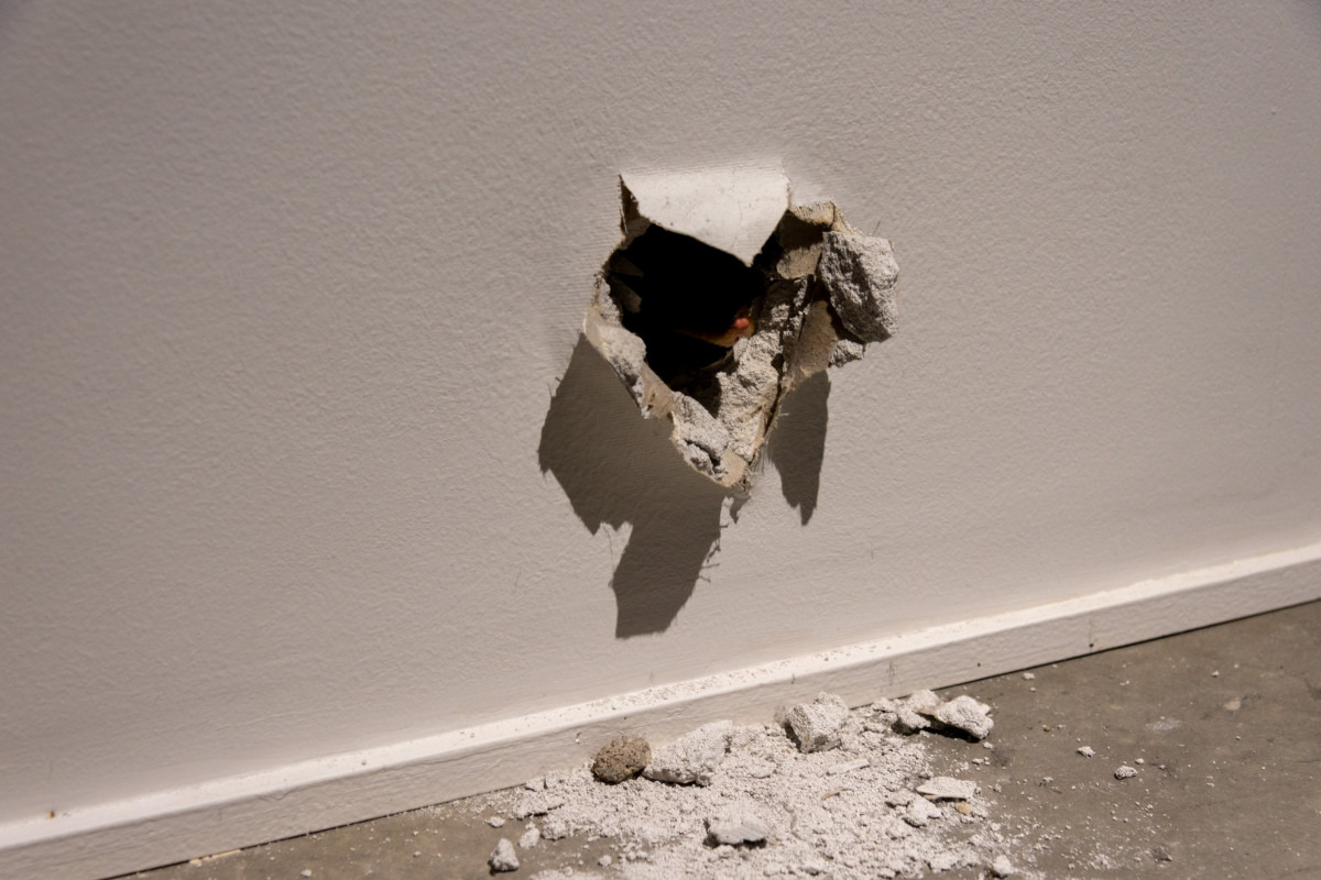 これは、展示されるアート作品を設置するために開けた穴などの痕跡をあえて補修せず、次の展示に向けてまた新しい穴を開けたり壁を壊すなど、展示室自体も少しずつ形を変えながら展示を変えていくコンセプトからあえてこのようなスタイルとなっています。