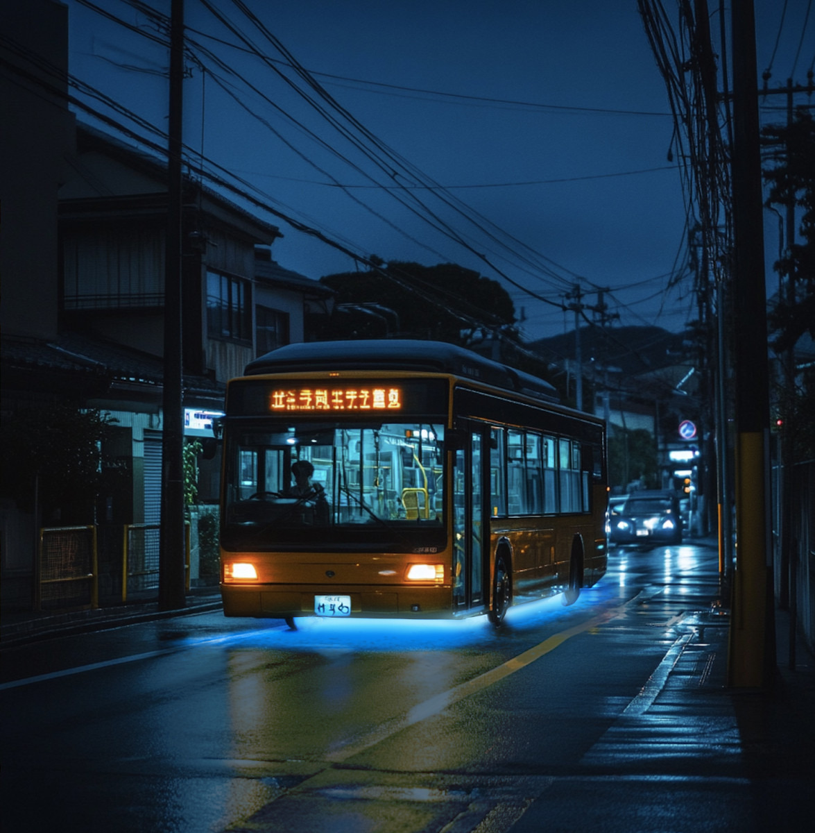 他にも岡山市内を走るバス60台をLEDでライトアップする作品も展開されます。いつどこで出会えるかわからない不確実性もさることながら、バスに乗ることで鑑賞者も作品の一部となり、楽しむことができる作品です。