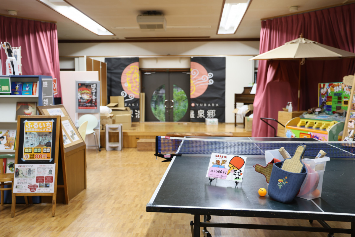 「湯原温泉ミュージアム」では、30分500円で温泉卓球を楽しむこともできます。ラケットは、普通のタイプとスリッパタイプのものがあります。