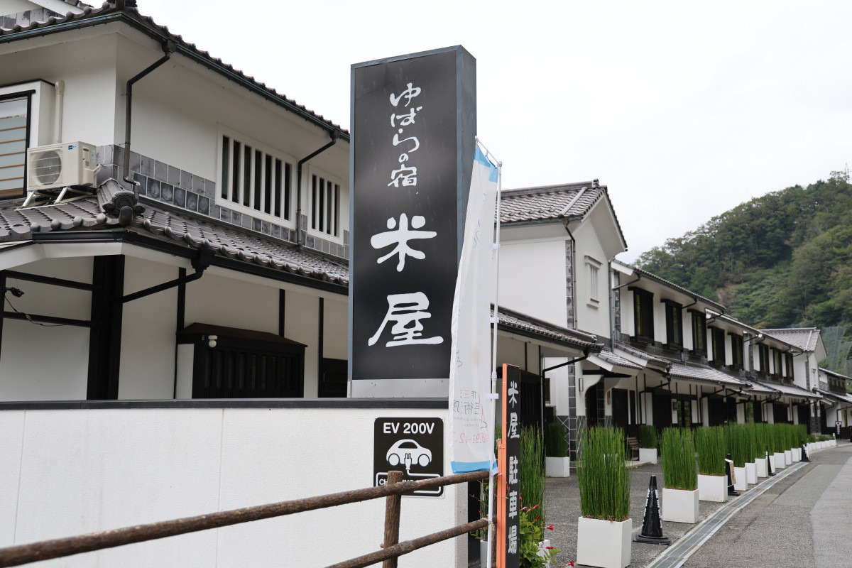 白壁と格子窓、なまこ壁の宿場町らしい佇まいのお宿。温泉街の中心から少し離れた美作街道沿いにあります。露天風呂、半露天風呂、中浴場、大浴場、貸し切り風呂、日帰り風呂があります。