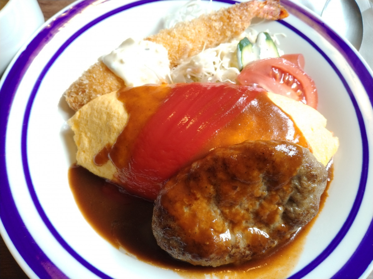 昭和31年(1956年)創業のレトロな食堂。ホテルの料理長経験もある3代目が腕をふるう洋食メニューが人気です。ふっくらジューシーなハンバーグとふわとろ卵のオムライス、ぷりぷりのエビフライまで付いた「松月セット」(1,000円)は満足度抜群の一品。