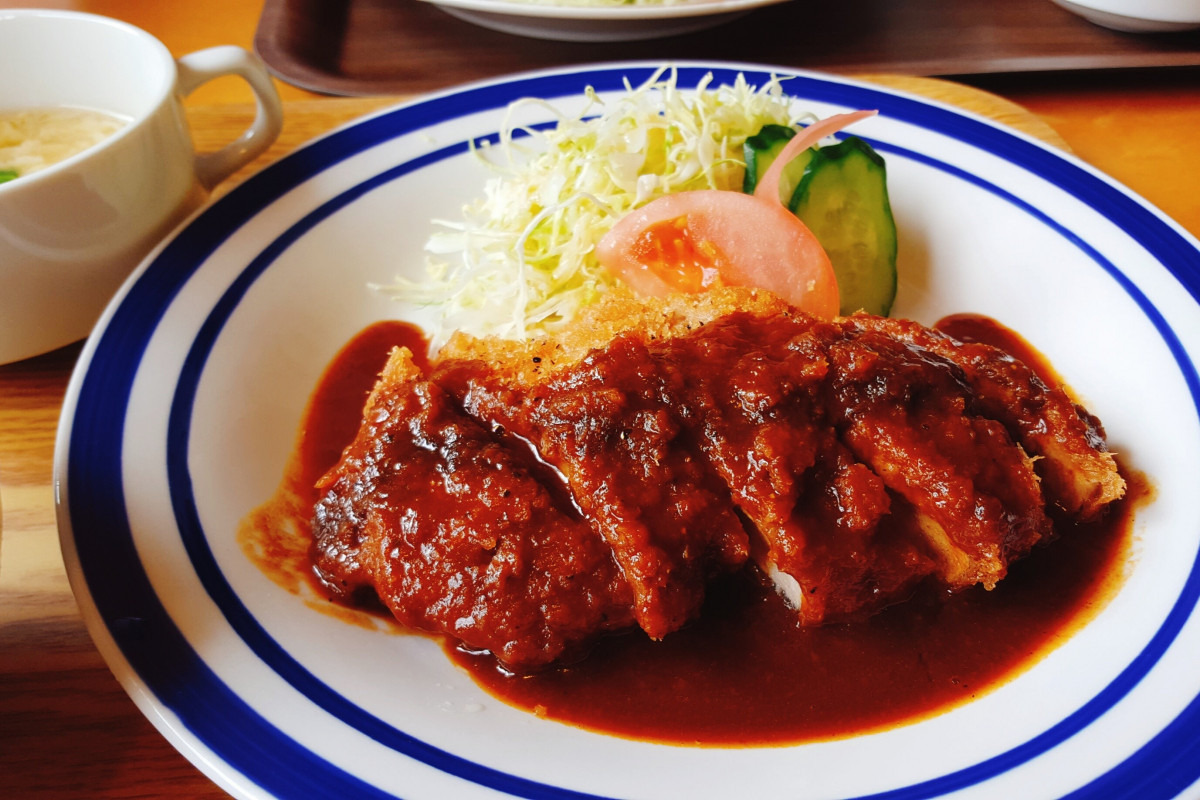 手作りのソースがかかった「ポークカツレツ」(900円)もおすすめ。ほかにもチキン南蛮や豚生姜焼、エビピラフ、ポークカツなど、幅広いメニューが揃っています。