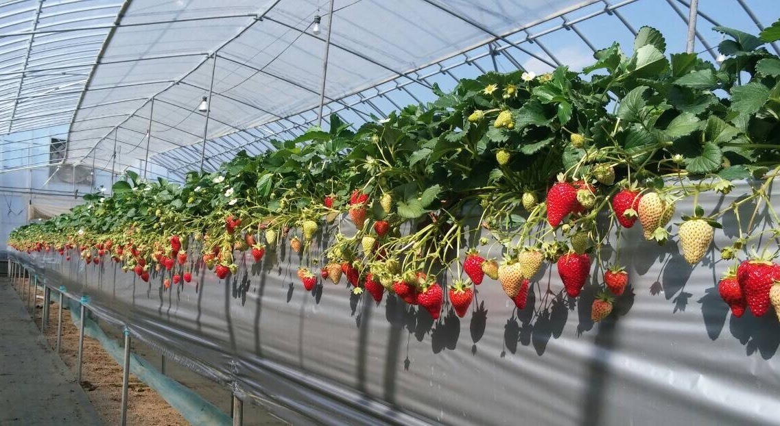 自然に恵まれた場所にある体験型観光農園。いちご狩り用ハウスは2ヵ所あり、「あきひめ」、「紅ほっぺ」、「さがほのか」が40分食べ放題で楽しめます。車椅子の人にも対応したハウスもあります。