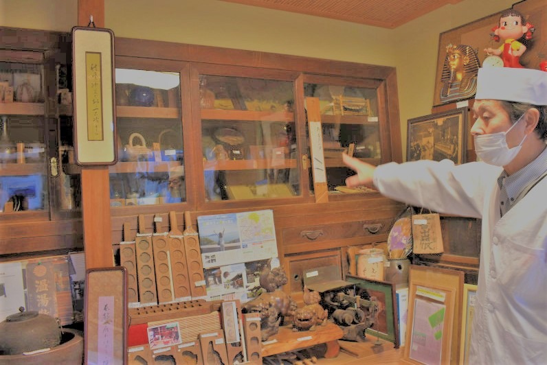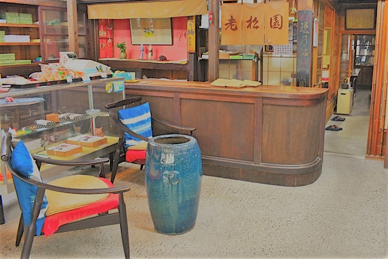 一枚の布のようなやさしい生地に求肥餅がくるまれています。「来年で130年でしたかね・・」表町商店街の中でも別格の佇まい。愛嬌のあるひょうたん型の看板一つにも歴史的価値ありです。