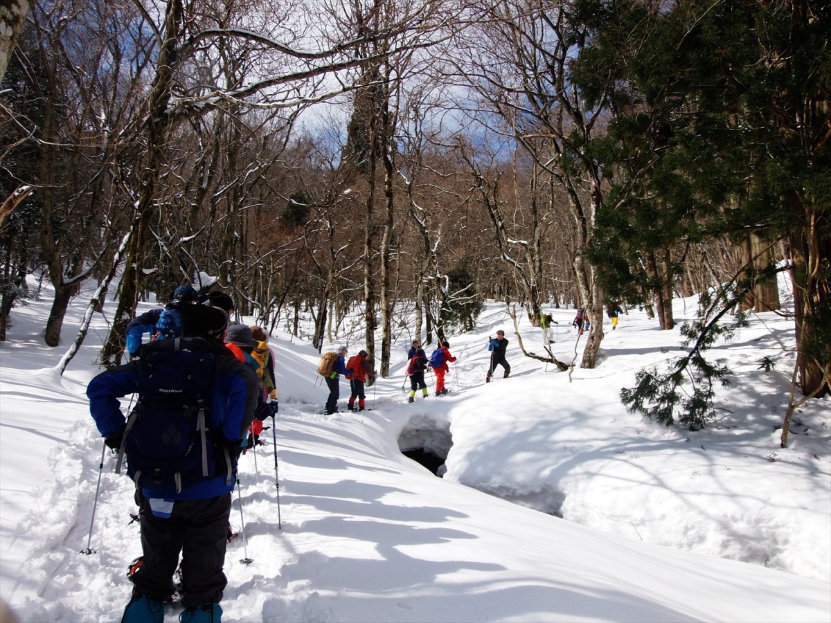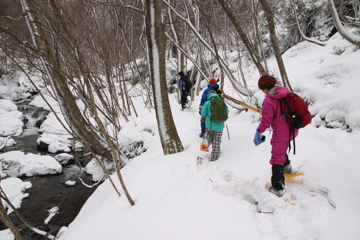 人気の山乗渓谷リバートレッキングの冬バージョン。パワースポットとして名高い山乗渓谷をスノーシューで巡ります。木々から落ちる雪の音や野生の動物たちとの遭遇など、普段の生活では体験できない世界が待っています。経験豊かなスタッフが同行するので初心者でも安心です。参加費 里山会席付き一泊二食:14,500円、一般参加者5,000円、登山用高機能スノーシューレンタル1,500円 ※要申し込み