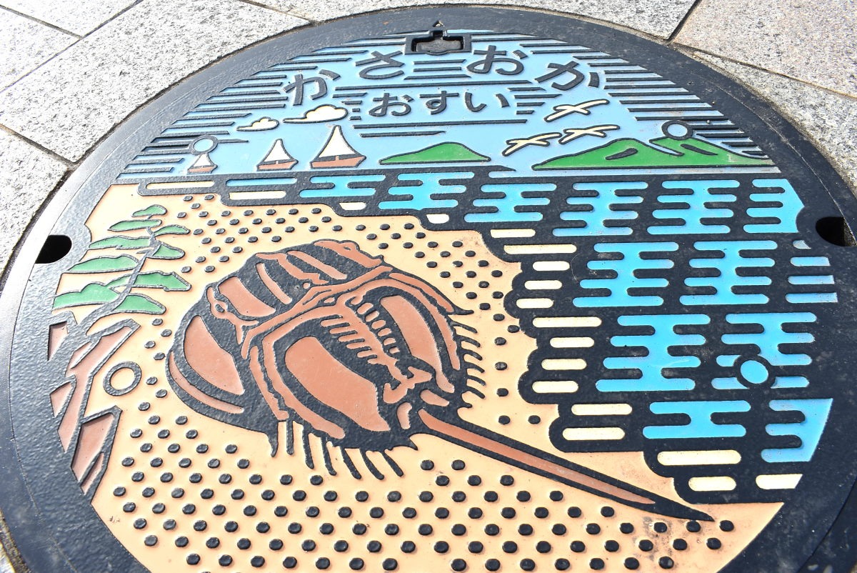 笠岡のシンボル的存在「カブトガニ」ですが、カブトガニが増えるということは水質が良い証。下水道のPRにも欠かせない生きているシンボルなのです。2017年12月より配布の最新マンホールカードにも選ばれました(第6弾)。