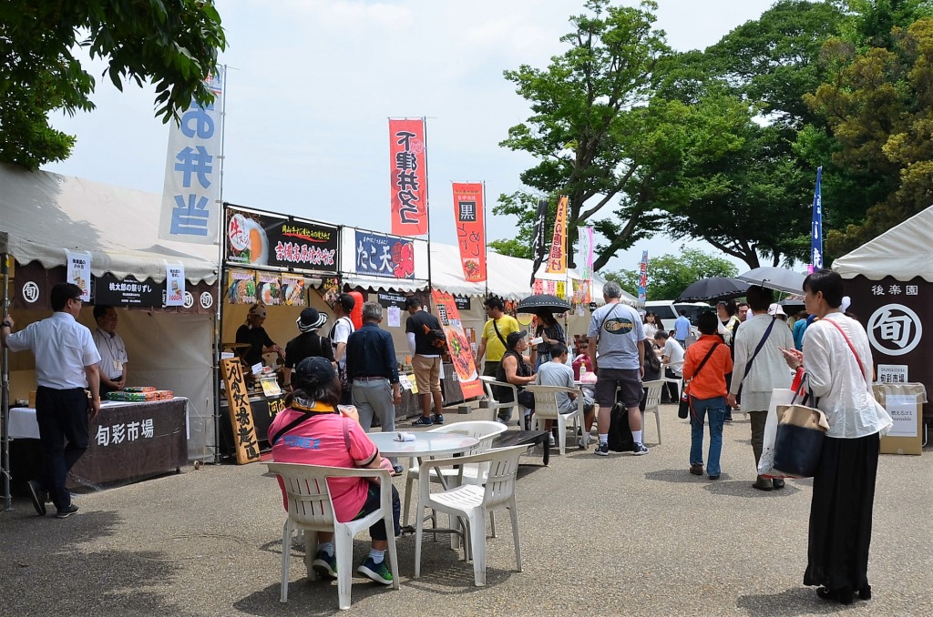 岡山後楽園西外園で行われている、岡山の特産品や工芸品、旬の食材やグルメが集まるイベントです。
