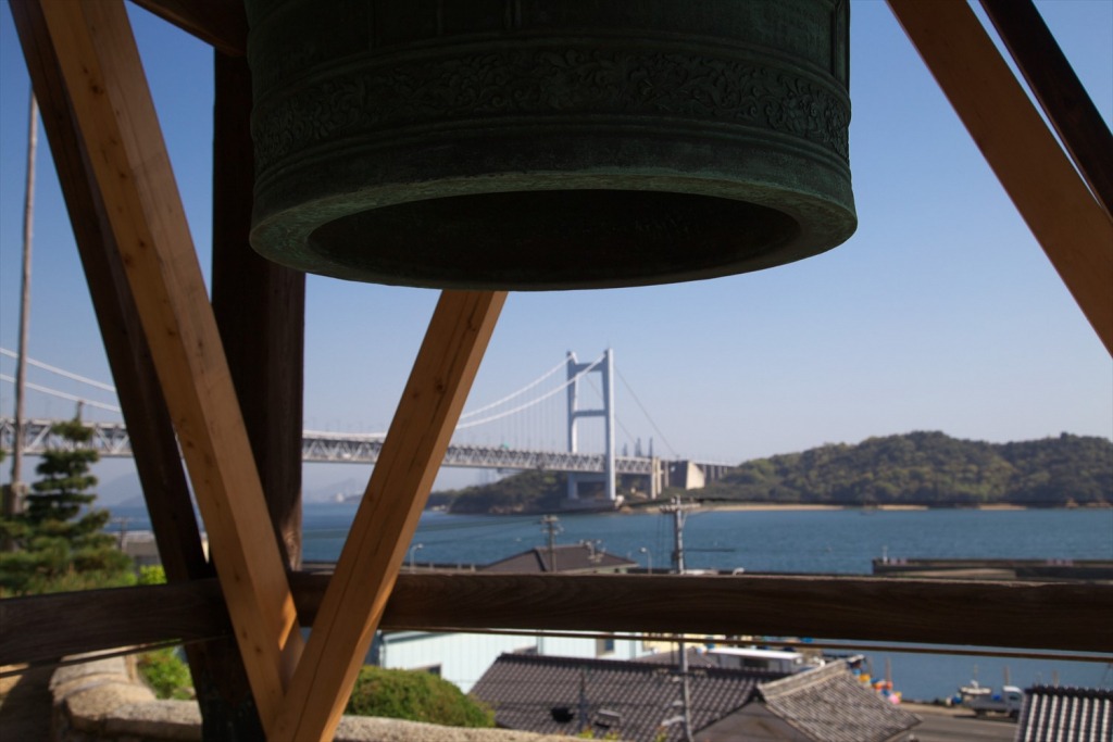 境内から塩飽諸島と瀬戸大橋を望むことができる、児島八十八ヶ所札所のお寺です。鐘撞堂からも多島美と橋が見渡せます。