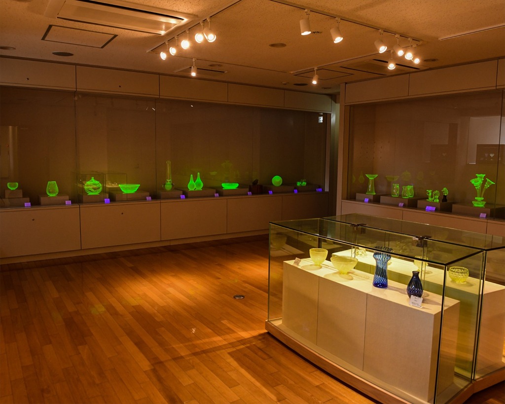 ※「常設展示室」には、たくさんのウランガラス作品が展示されています。