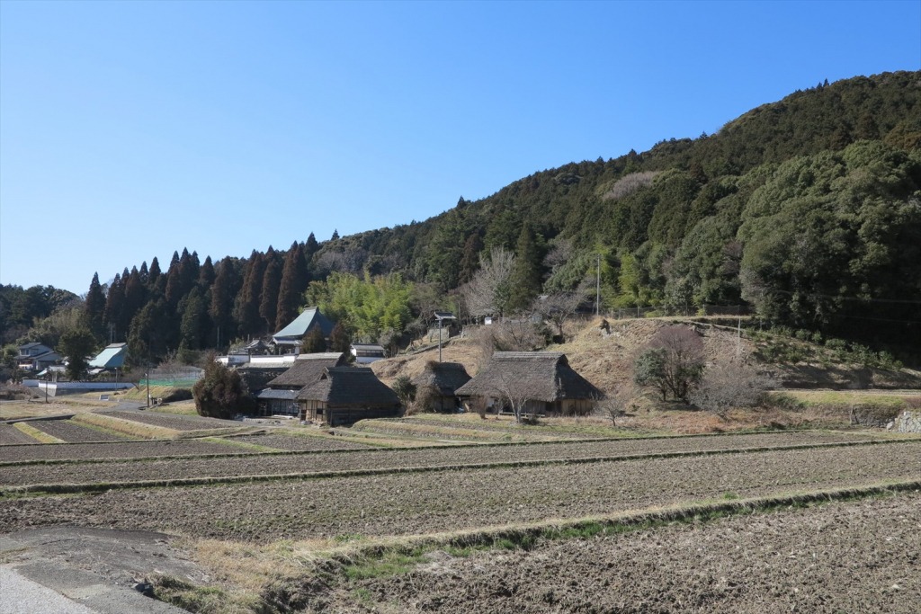 吉永駅から北へ約20km。つづらおりの坂道を車でぐんぐん登り、山頂付近にまで差し掛かると、突然視界が開けて茅葺屋根の家々が立ち並ぶ景色が広がります。ここが、「八塔寺ふるさと村」です。標高は400m。弓削道鏡と呼ばれるお坊さんが開いたといわれ、一時期は72もの寺院や僧坊があったと伝えられている聖地なのです。