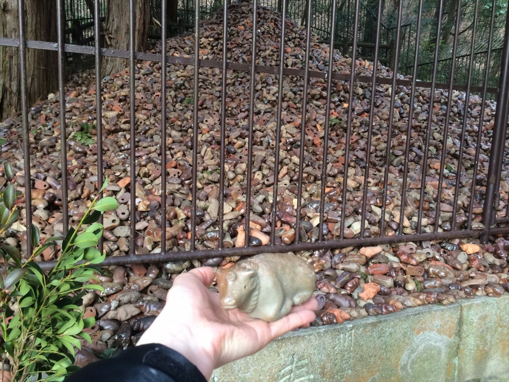 祈願する際、備前焼製の子牛ちゃん(参道脇で売られています)をお供えし、すでに供えられている牛を1体持帰り、大願成就のあかつきにはさらに一体を供えてお返ししお礼をする…というサイクルで今や20万体ものお牛さまが集まっているとか。圧巻です。