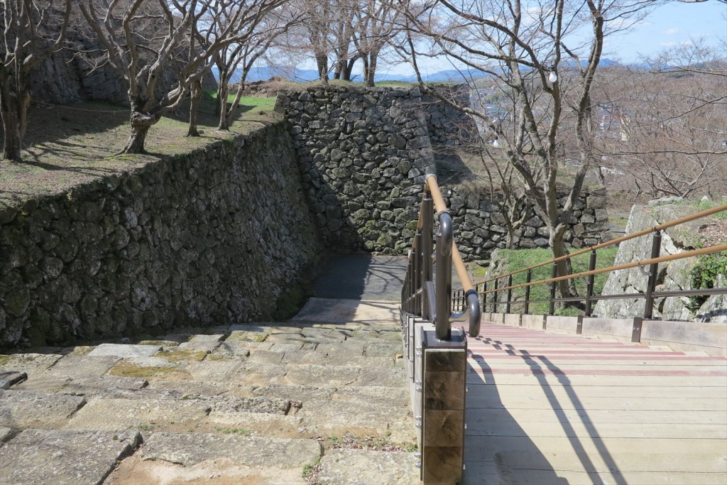 一方で、石垣の上からは階段を登る侵入者を、簡単に狙撃できそうな見晴らしの良さ。攻めようという気力すらわいてきませんね。