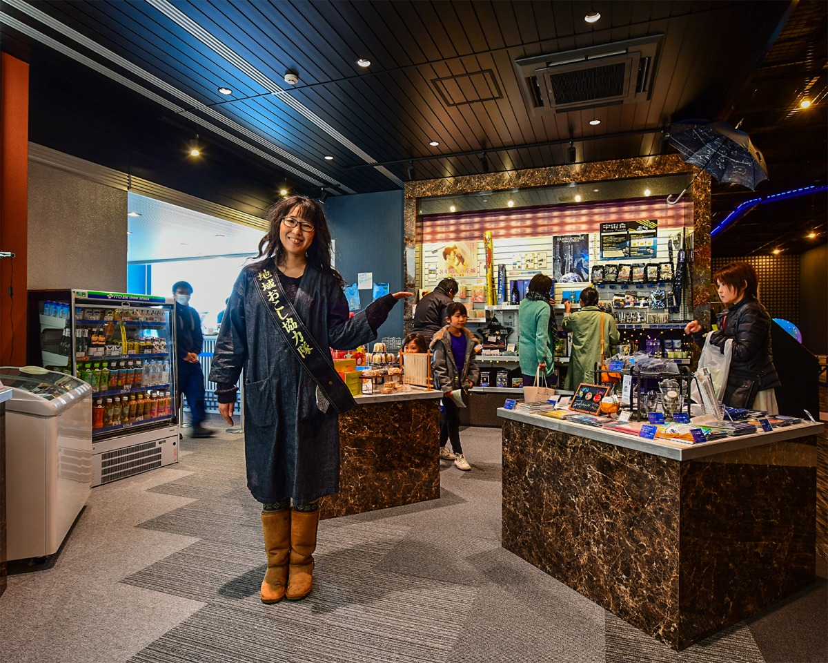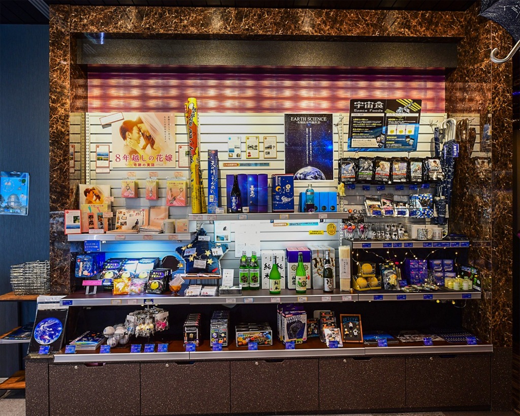 地元の特産品や宇宙関係のグッズがとても充実しました。地元のお酒や「かもがたうどん」などたくさんの商品がありますので、おみやげにいかがでしょうか。