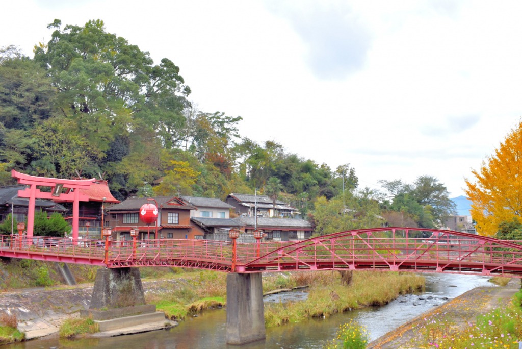 目にも鮮やかな紅色の太鼓橋が、934年創建とされる千代稲荷神社へ誘います。インパクトある大きな大きな提灯につい吸い寄せられて。城下町の趣を色濃く残す、アメージングジャパンの不思議空間です。宮川沿いの散策にぜひ。(2017秋撮影)