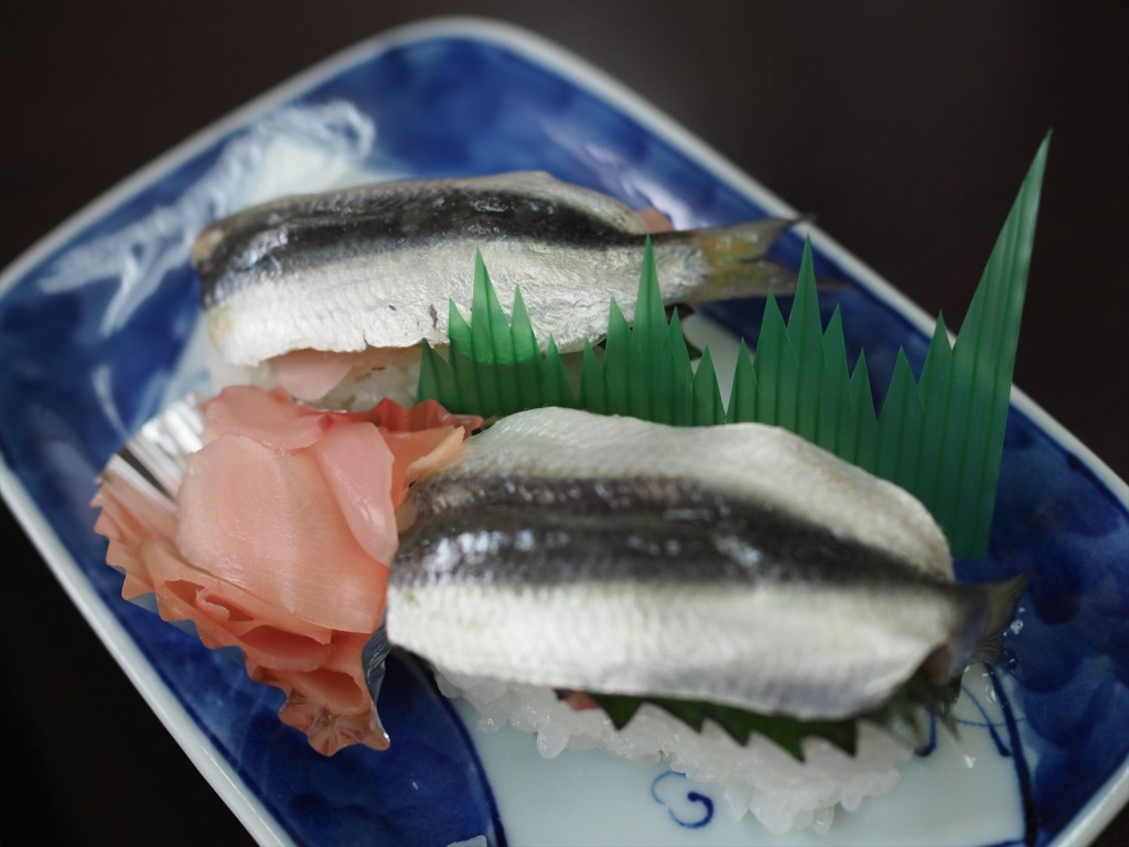 「御食事処ゆのき」さんでは、ままかりの酢漬けと酢飯の間にしょうがが入っていて、さっぱりといただけます。