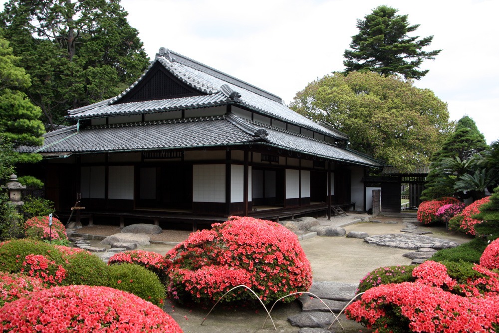 サツキが咲く表書院風景です。サツキは5月下旬から6月上旬が見頃です。