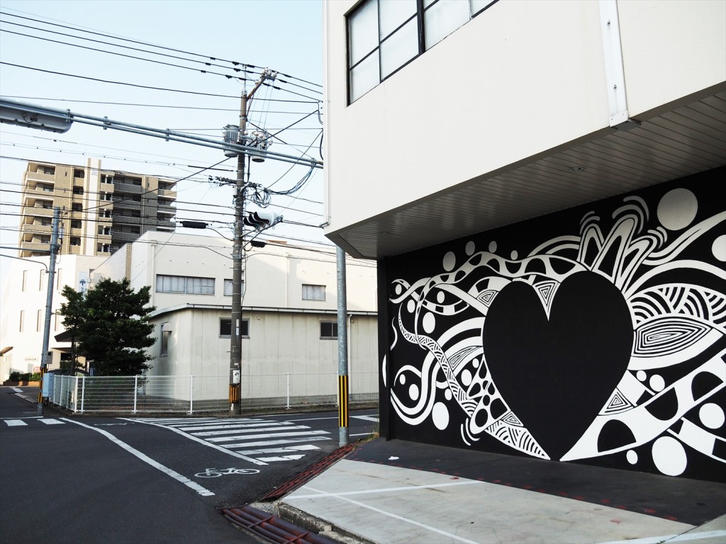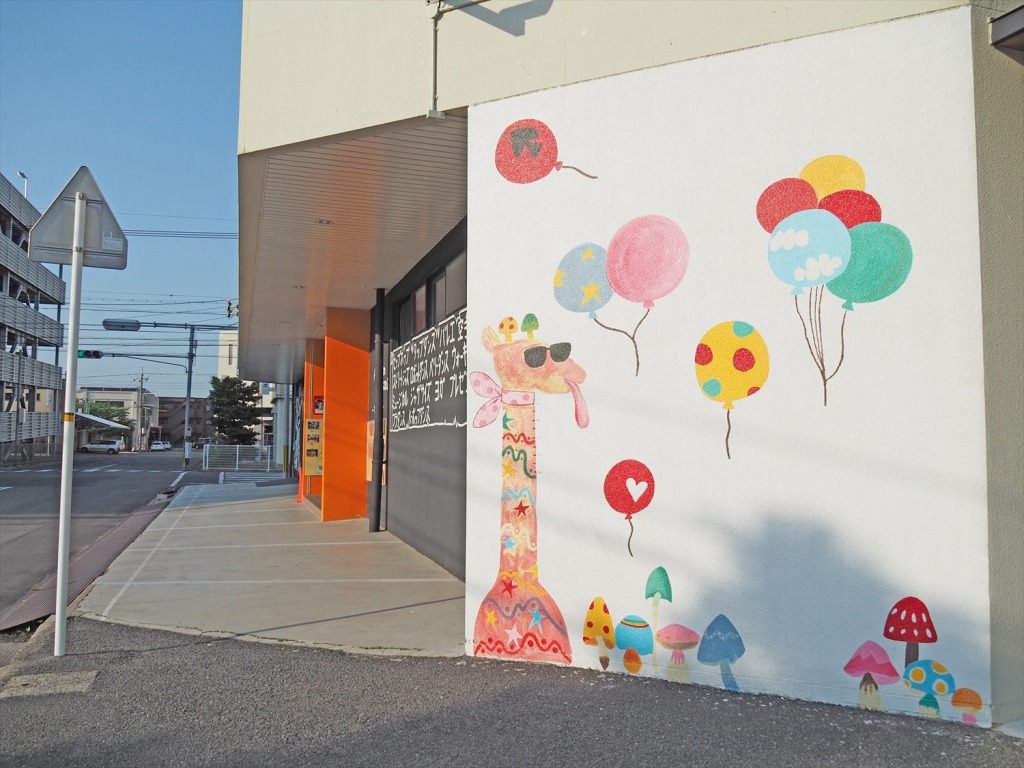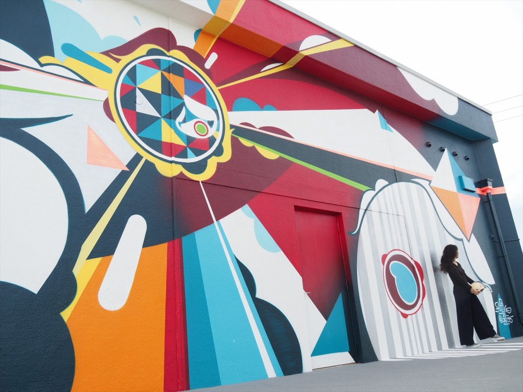 岡山市問屋町は、まさにウォールアートの聖地。おしゃれな壁がたくさんあります。