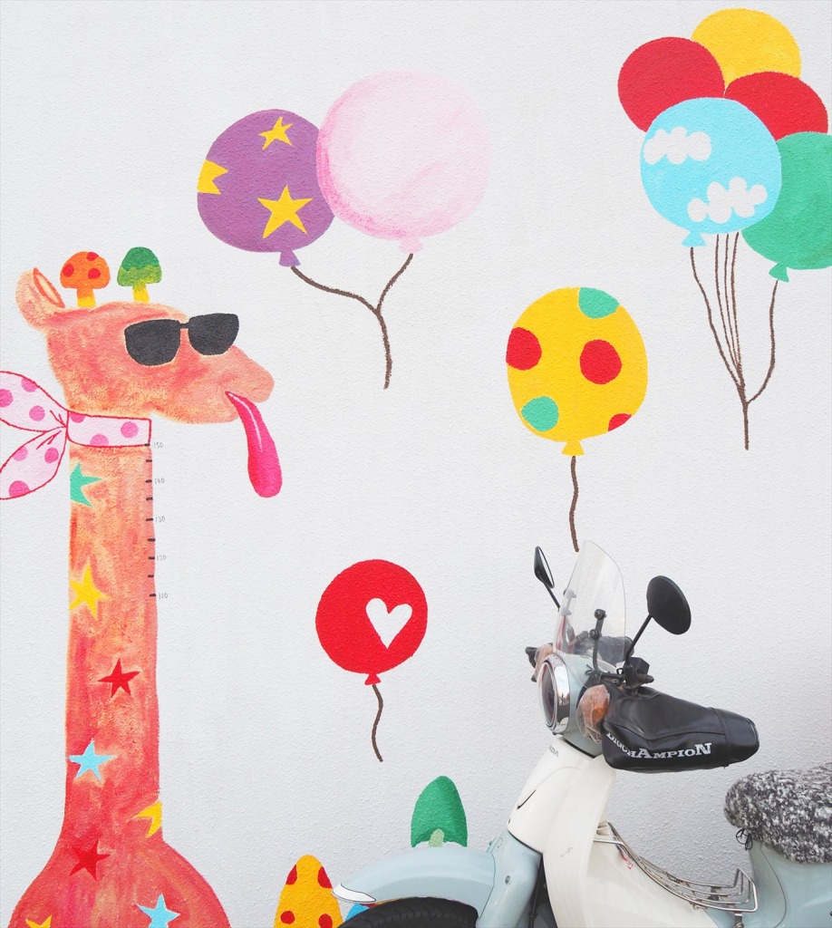 キリンの壁のお隣にも、おしゃれなウォールアートが。