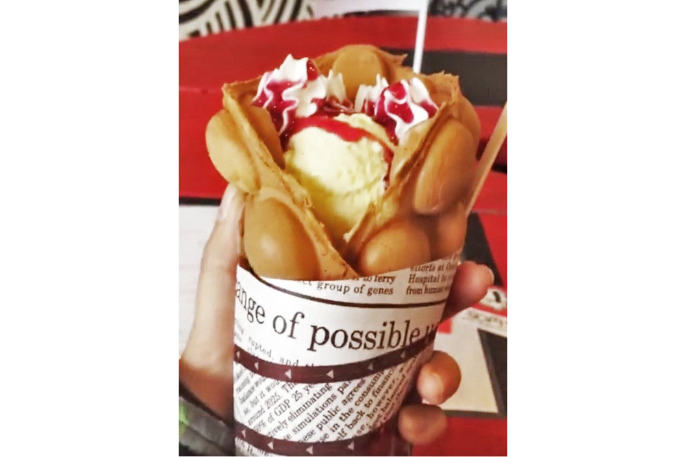 ワッフル店「CORE」さんでは、バブルラップワッフルという、アイスクリームをトッピングしたモチモチ食感のワッフルがいただけます。