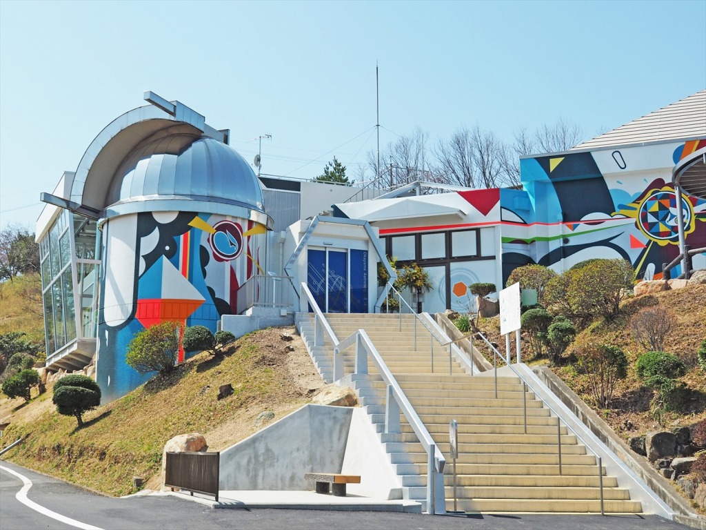 2018年3月にリニューアルし、「え!これが博物館?」というカラフルな外観となった、浅口市の岡山天文博物館。