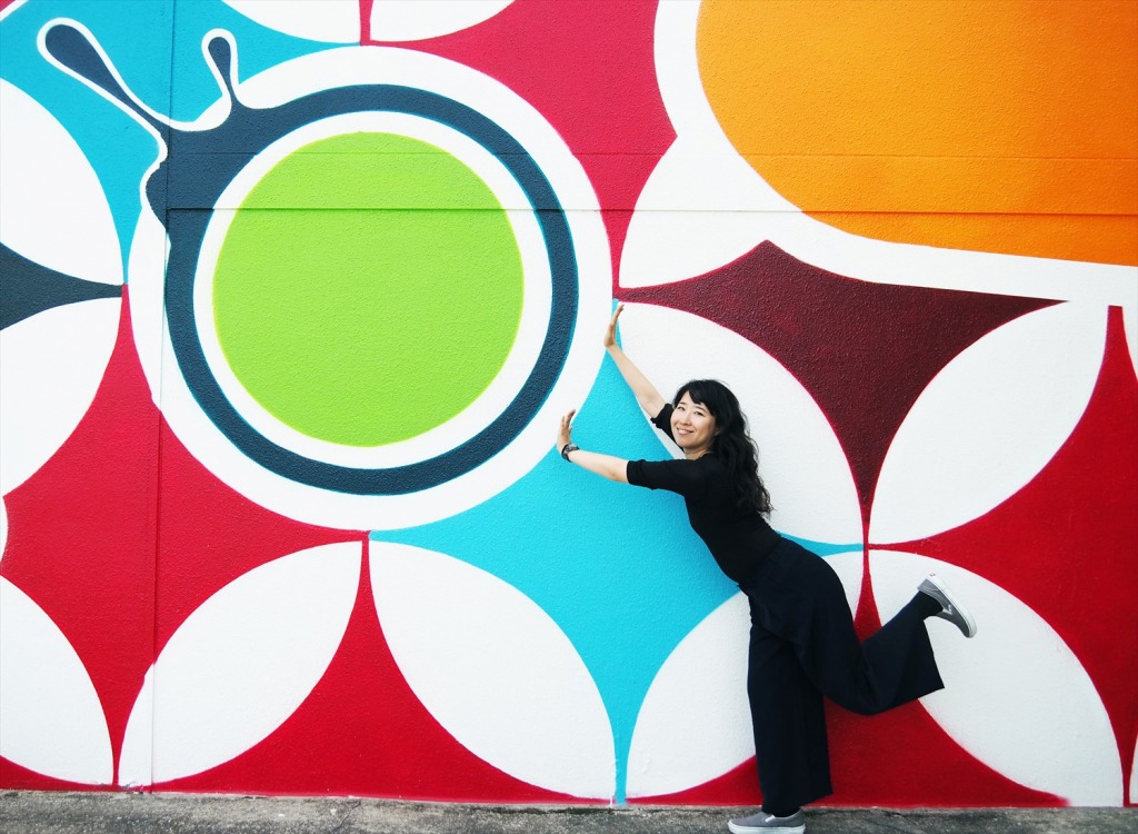 アーティストSUIKOさんが手がけられたこのウォールアートを背景に、おしゃれなスナップ写真を撮ることができます。