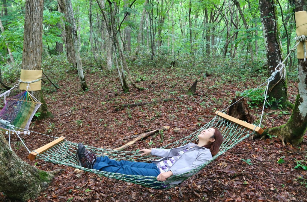 緑に包まれた森の中でハンモックに揺られていると、心身ともに癒されます。