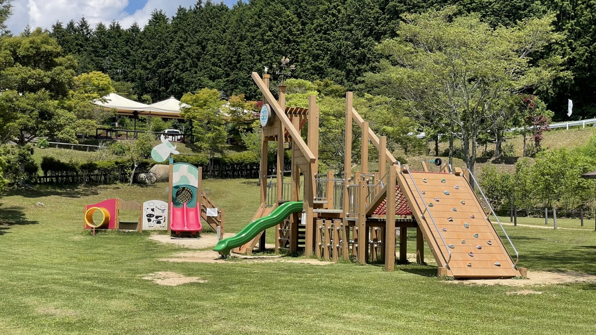標高50~180mの緑豊かな場所にある道の駅。農水産物や特産品の販売所をはじめ、パン工房やレストランも併設。公園内には100種類を超える花や木など自然あふれる「散策ゾーン」やわんぱく広場があり、遊具はもちろん芝生の上でキャッチボールをしたりピクニックをしたりと、ファミリーで楽しめます。