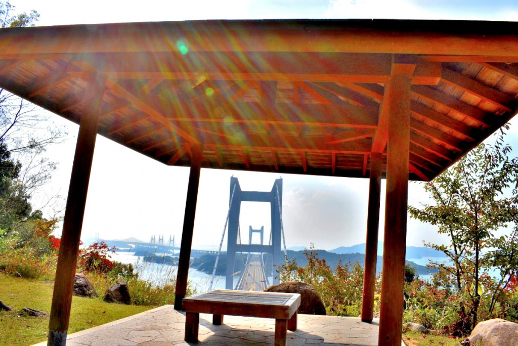 ダイナミックな遠近感に心をうち抜かれたいならここ。トンネルの真上の東屋(あずまや)です。鷲羽山レストハウスからわずか600m。ど真ん中のスカッとする眺めに出会えます。