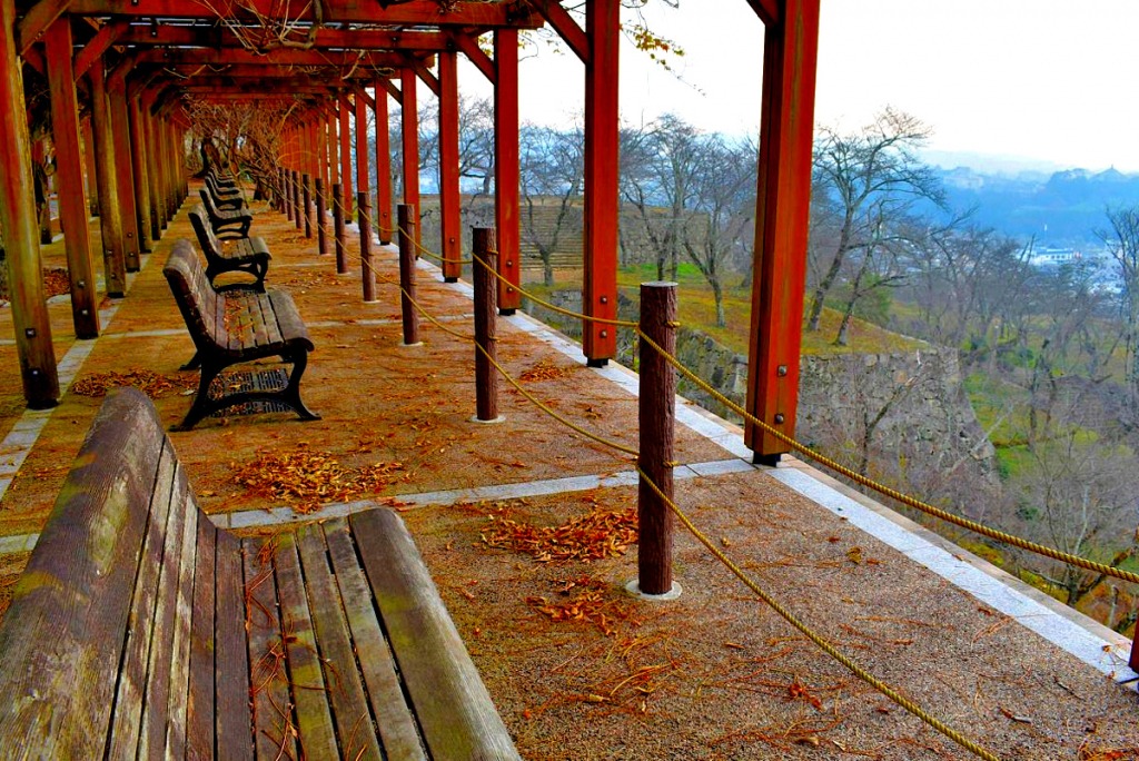 まるで浮いているかのような空間です。ソメイヨシノ、新緑、紅葉と季節ごとに足元にを彩ります。さらに神楽尾城跡のある山頂まで足をのばせば360°パノラマ。雄大な山々、城下町が眼下に広がります。