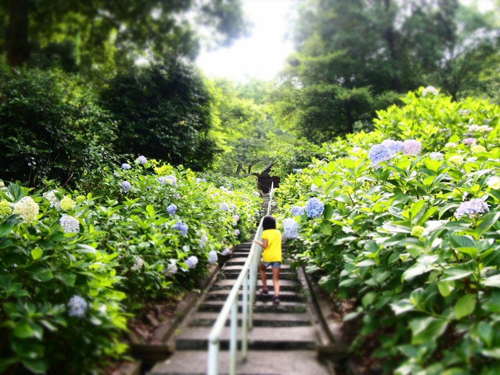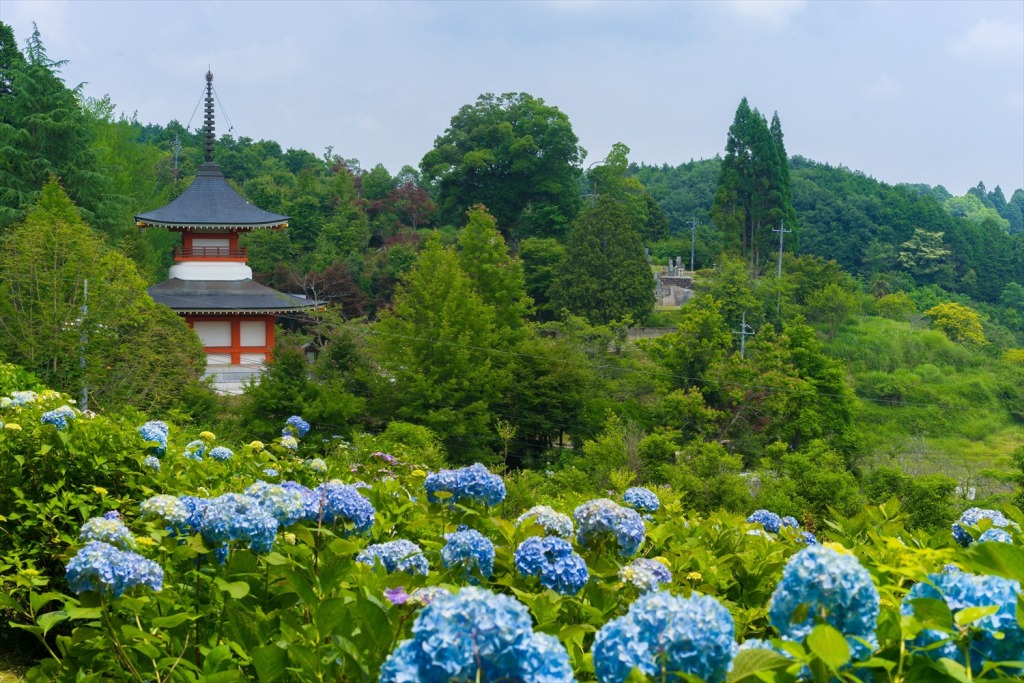 寺の周辺には約5,000株のあじさいが植えられており、別名「あじさい寺」としても有名です。毎年「あじさい花まつり」が行われ、多くの人が訪れています。[6月中旬~7月上旬]