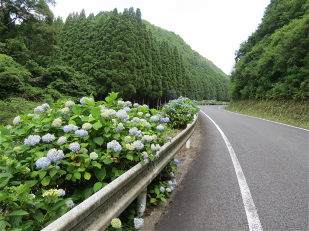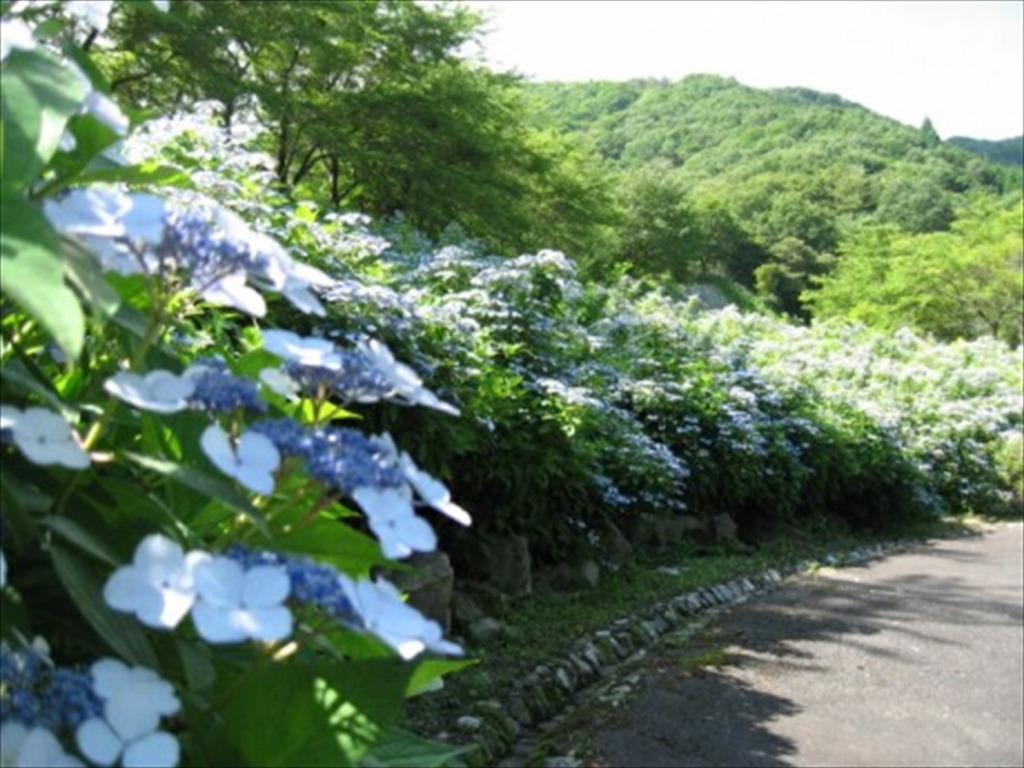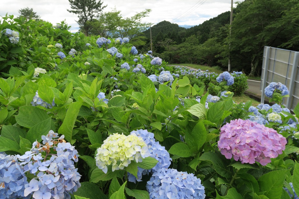 大山展望台までの約2.5kmの山道に約3,000株のあじさいが植えられ、「あじさいロード」として整備されています。[見頃]6月中旬~7月中旬