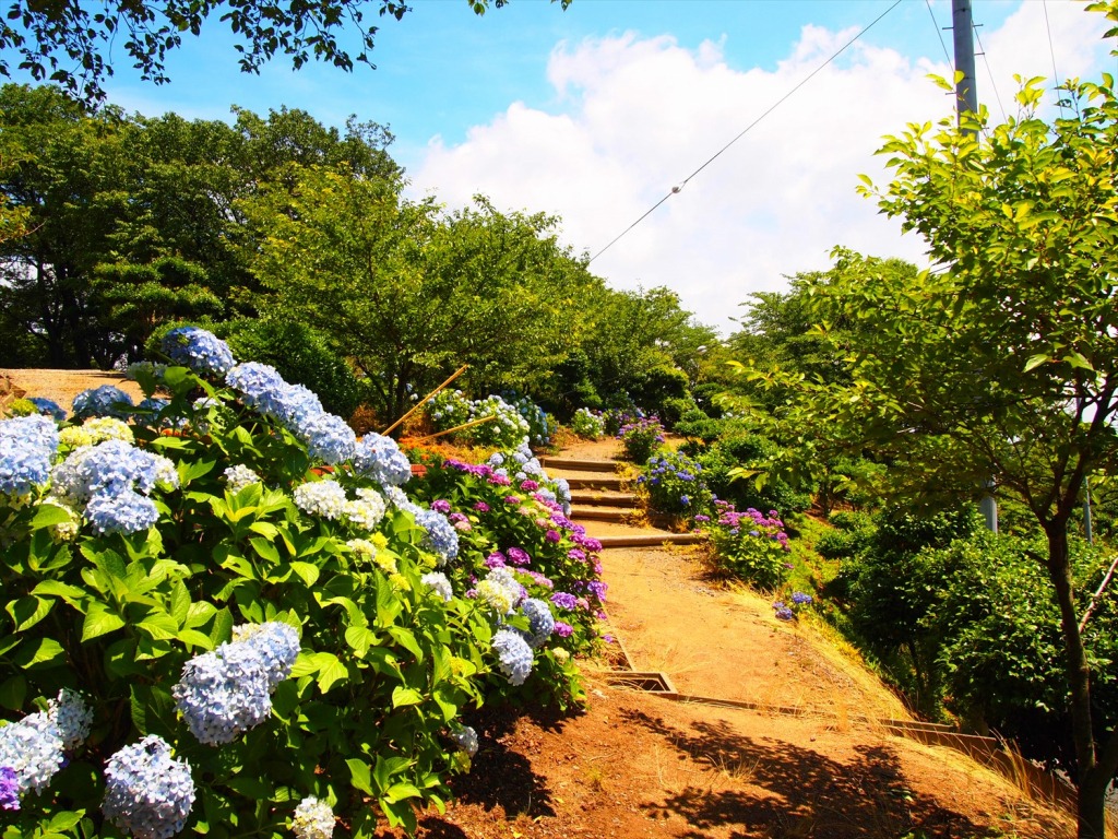 水島工業地帯を一望できる展望と充実したこども向けの遊具が人気の総合公園です。園内には約13,000株のあじさいが至る所に咲き並んでいます。[見頃]6月上旬~下旬