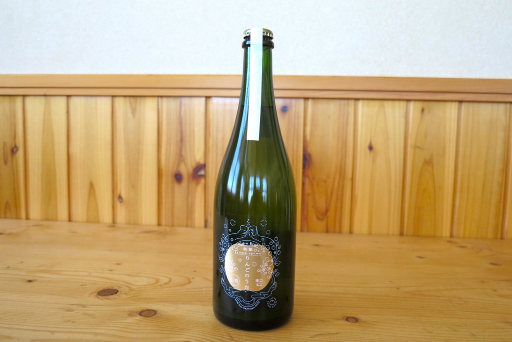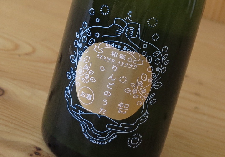 シードル大好きな開発者の平井さんいわく「少し弱っていたリンゴの木を、地元の職員さんと地域おこし協力隊の若者の協力による世話で元気に。美しい山と川に囲まれた和気町で、役場や商工会など様々な人たちが力を合わせて生み出した大切なシードルです。そんな気持ちをデザインしてもらいました」とのこと。