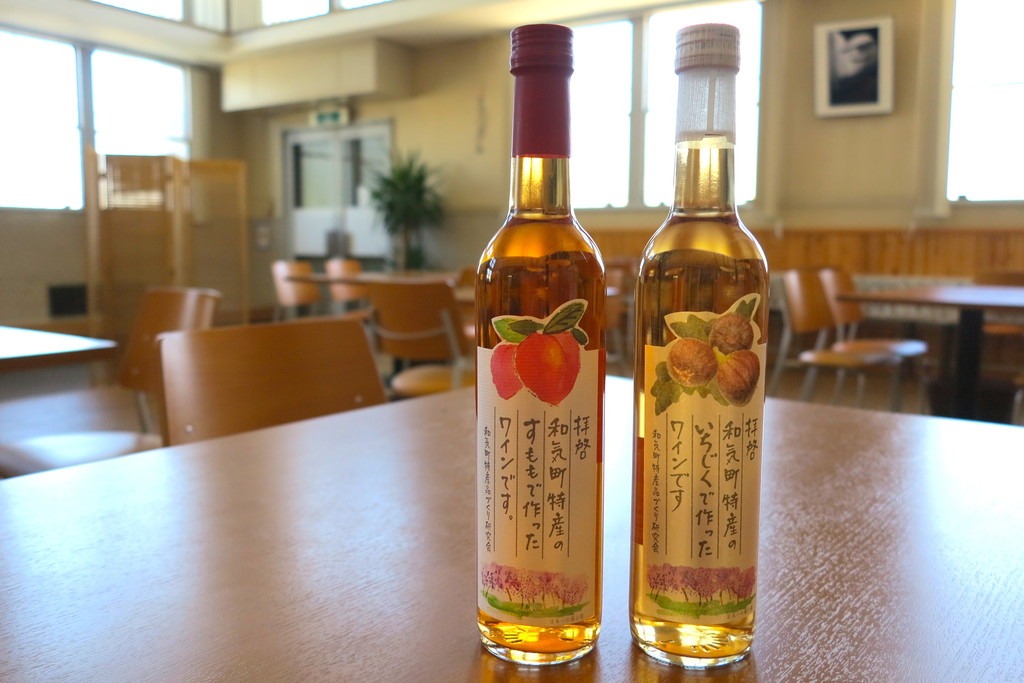 こちらは、ロングセラーのフルーツワインです。地元の果物を特産品に加工したいとの思いから、和気町産の果物であるイチジクやスモモを使い、甘口のワインに。
