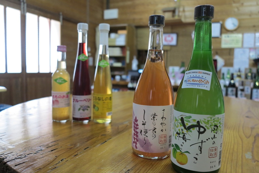また、赤しそを使ったルビー色の日本酒や、熊山で採れたブルーベリーのお酒、新庄村の特産である「さるなし」を使ったユニークなお酒など、他ではなかなか飲めない果実酒がたくさん。