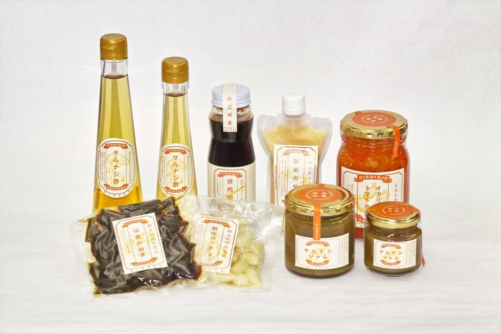 道の駅のリニューアルにあわせて誕生した、新庄村が運営する地域特産品の定番ブランドです。村でとれた果実・サルナシを使ったジャムや酢、毛無山の原生林から湧き出る清流で育てられた餅米・ヒメノモチを100%使用した甘酒、山蕗の佃煮やらっきょう漬けなど、新庄村の「おいしい!」が大集合。村の歴史やあたたかみを感じられるパッケージデザインも素敵です。
