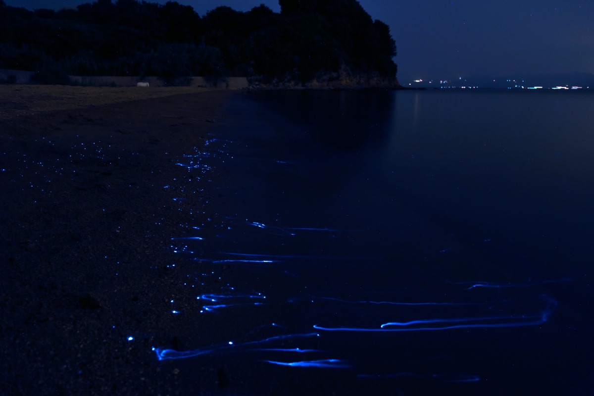 初夏から秋にかけて、牛窓の海では幻想的な青白い光を放つ海ホタルが見られます。波打ち際できらめく神秘的な光は、まさに「ホタル」のよう。「ホテルリマーニ」では、宿泊者を対象にした観賞ツアーも行われています。