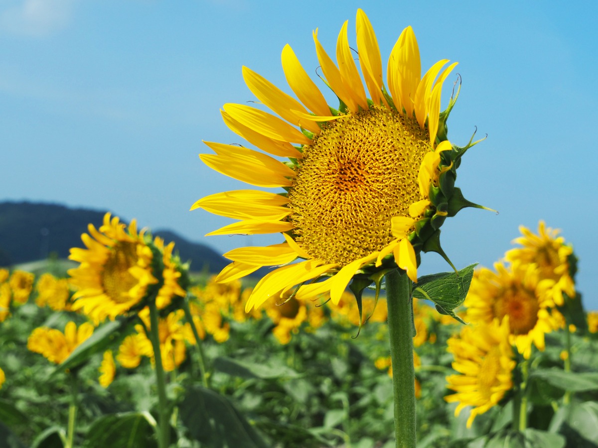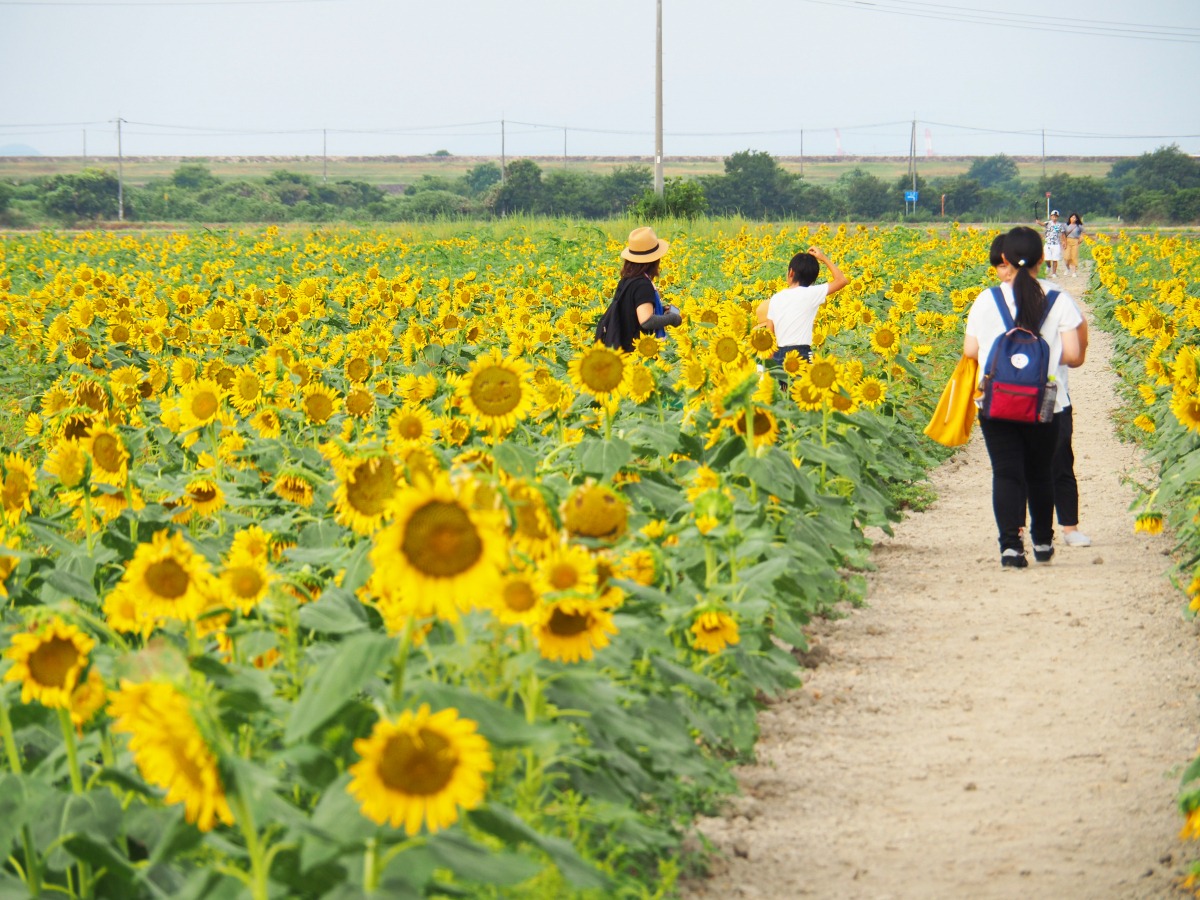 春は菜の花、ポピー、秋はコスモス、そして今は、ひまわりシーズン真っただ中!